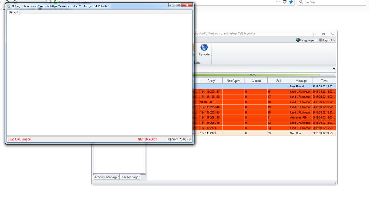 if the program is running, this error message will be displayed every time ( Load URL Timeout ) see screenshot