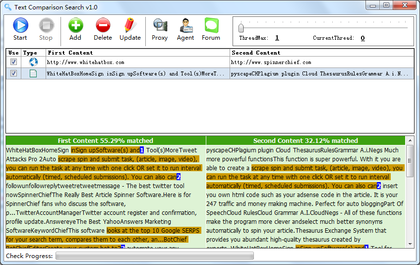 Protect yourself from plagiarism plus copyright infringement. This tool enables you to compare different web sites or text side by side. The percentage of duplicated content is displayed at the top of your outcomes, and all duplicated text will become highlighted so that you can easily locate and correct any issues.
