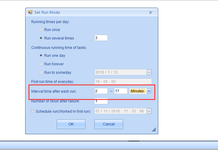 Hello, the interval time for each run you set is wrong. It should be like this:
