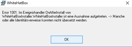 2. i cant install the whitehatboxapp cause i allways get an error 1001: